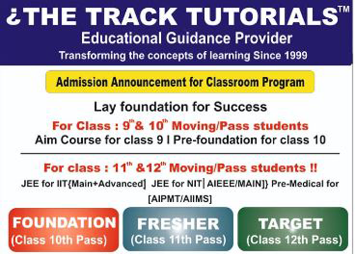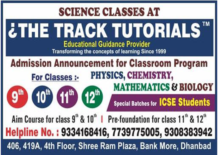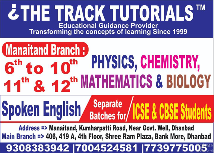 "The Track Tutorials" is one of the top leading coaching institutes of Dhanbad for Science Classes. "The Track Tutorials" is a well known name in the education industry for providing valuable Edu-services to students.